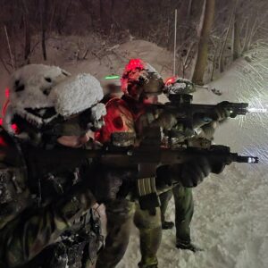 W dniu 27.11.2025 r. GT „Błękitni” przeprowadziła trening strzelania w warunkach ograniczonej widoczności. Szkolenie poprowadził wteran z Wojsk Specjalnych.